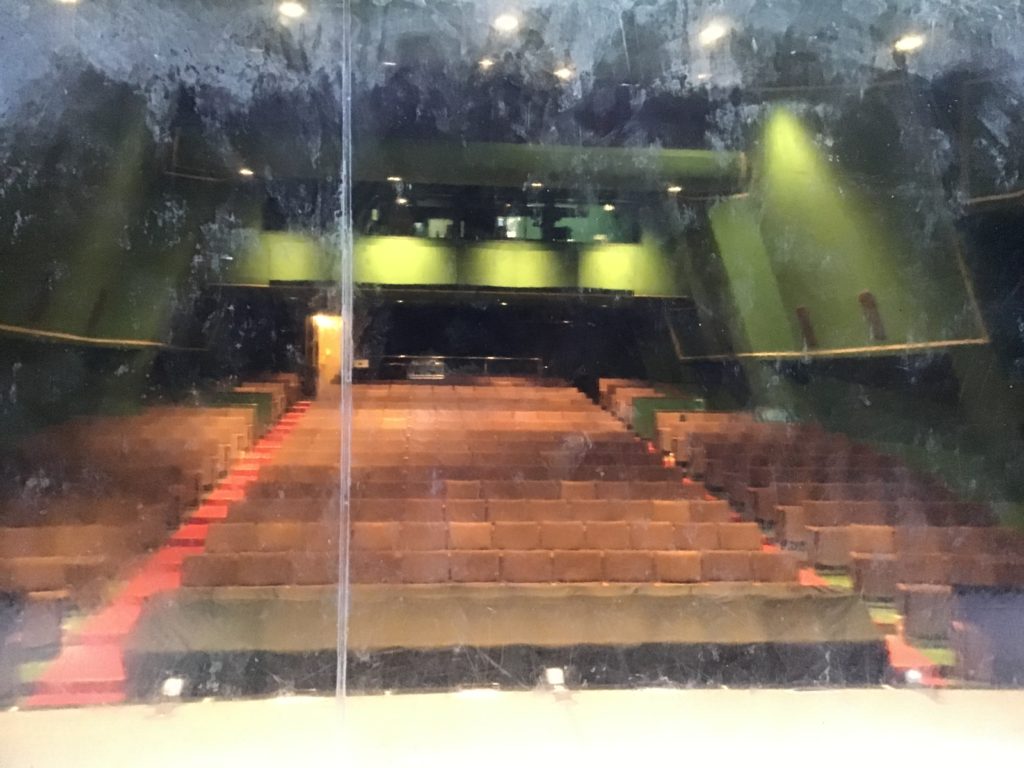 さっきも書いたビニールシート越しに見る客席⬇️