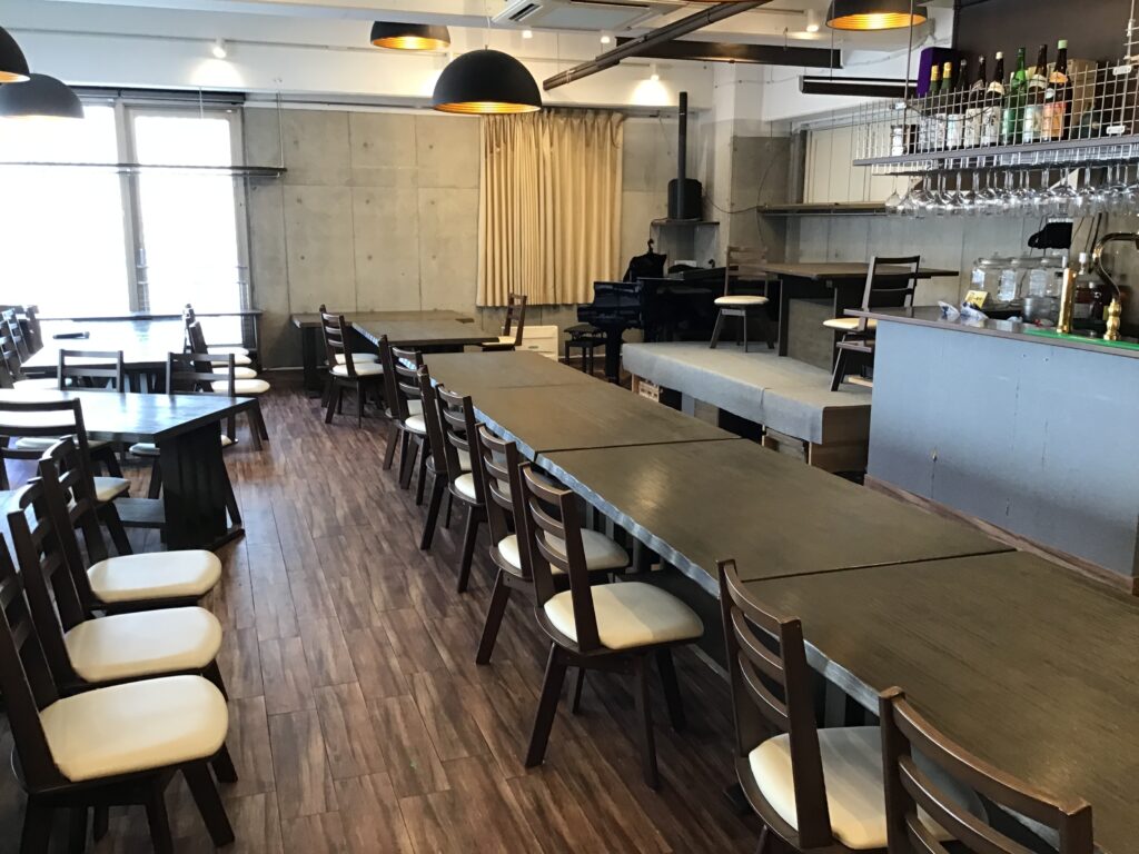 1間半と1間ほどのステージがありテーブルを全部片付けて椅子を並べるとライブ会場に変身。