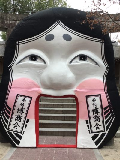 鳥居の前には大きなお多福がお出迎え!!⬇️